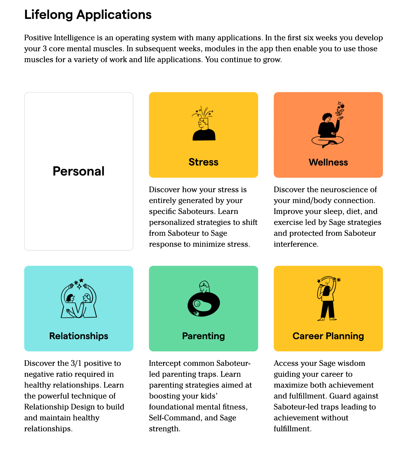 Though you could certainly purchase this program and get through it on your own, there are huge advantages to doing it with a trained Positive Intelligence Coach and a pod of peers. The support and accountability you'll receive increase your chances of successfully building new mental health habits, embodying the information you'll learn, and creating lasting change--and that's why you're here, right?